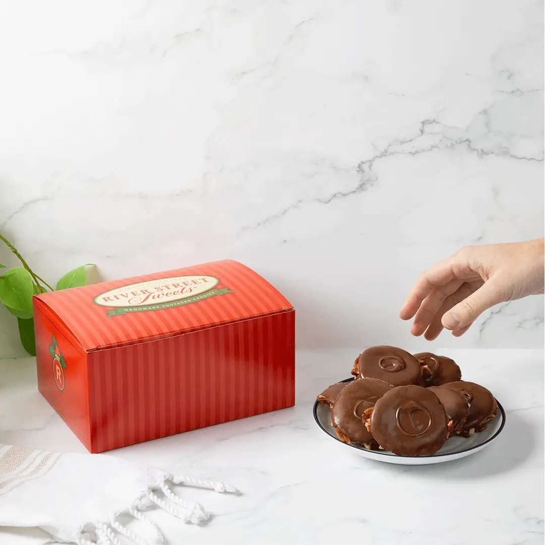 Our #1 chocolate confection. Some people call them Turtles, but we call them Bear Claws®! Luscious milk chocolate and creamy homemade caramel atop crunchy pecan pieces make our Bear Claws® absolutely scrumptious! Packed in our holiday gift box, these Bear Claws® are sure to be the favorite gift received this year.